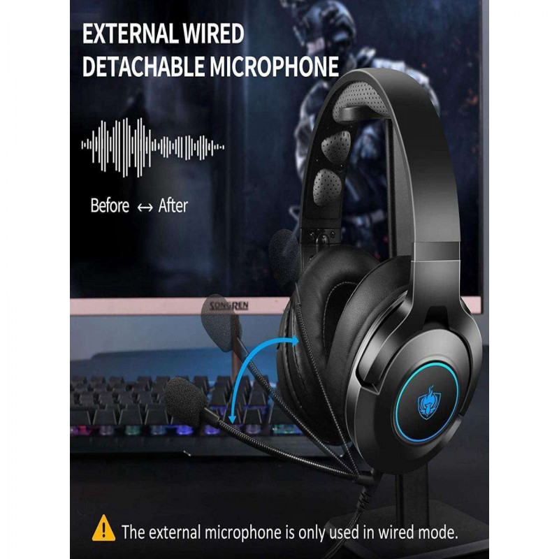 - 🎧🎧IMPORTANT NOTE: Note 1: The detachable audio cable needs to be plugged when playing game, please make sure your device is 3.5mm jack, otherwise you need to add an adapter. Note 2: The headphone has a built-in microphone, it can only be use when making a call. Note 3: The headphone has an LED on-off key, you can turn the lights on / off according to your preferences.